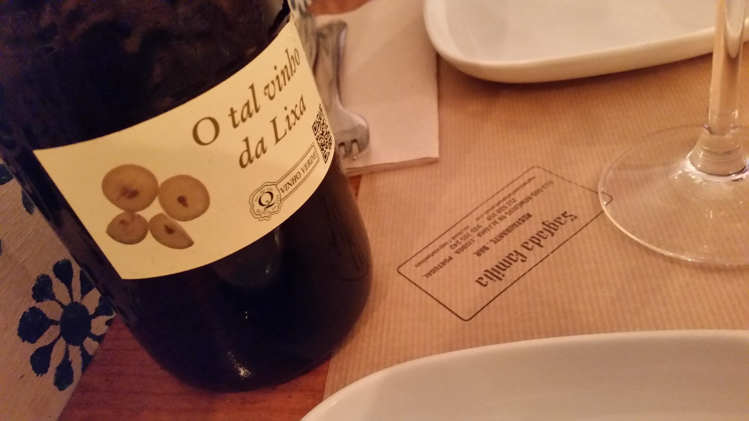 Back to that one cool night, my husband ordered steak and I ordered clams in a tomato-based sauce, so we thought a red might be in order. We were in a small restaurant-bar where all the locals ate, so the prices were definitely on the lower side. I’m no connaisseur when it comes to Portuguese reds, so I asked the server for a mid-range recommendation (i.e. 8 euros), and this is what she brought.